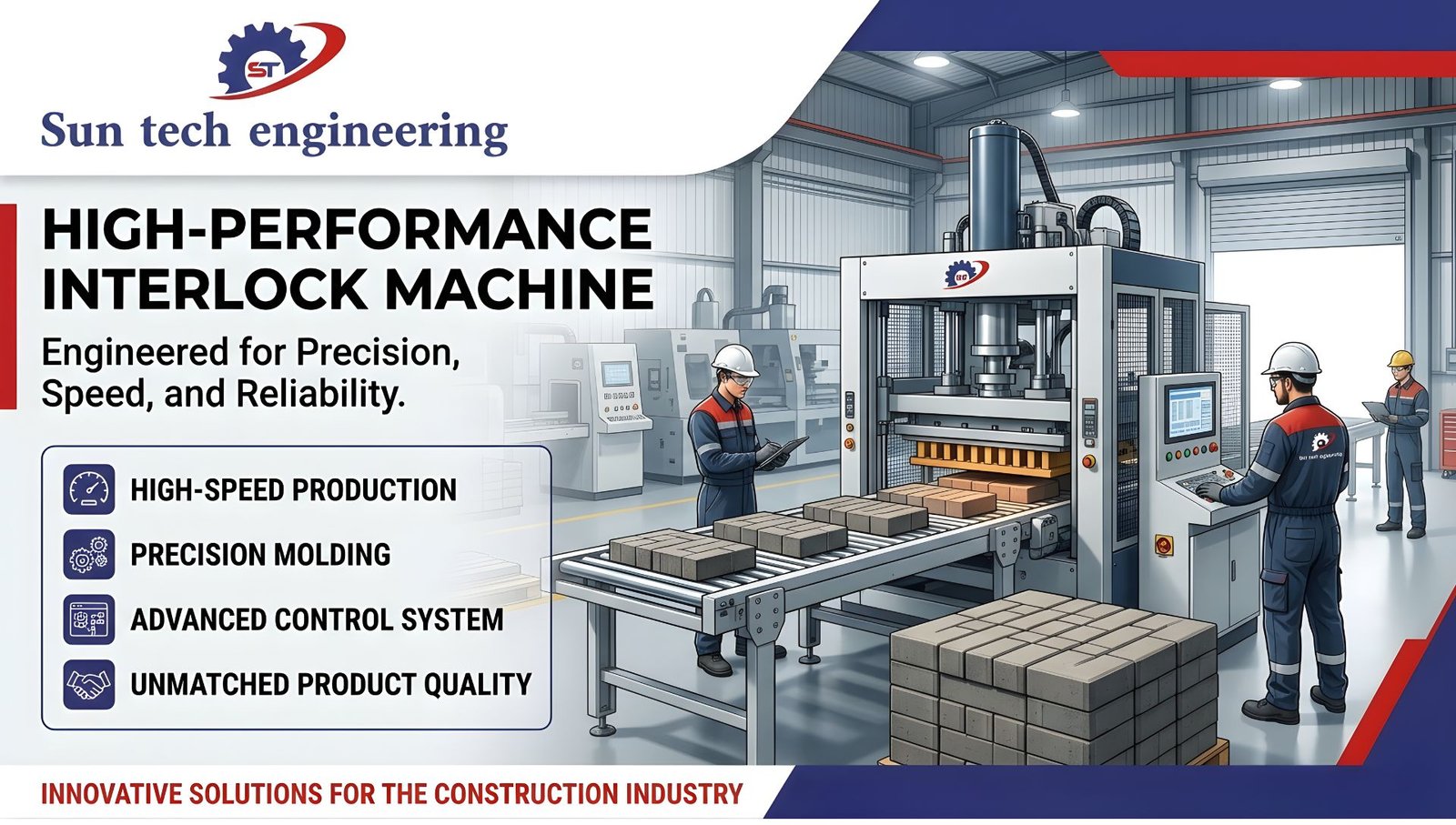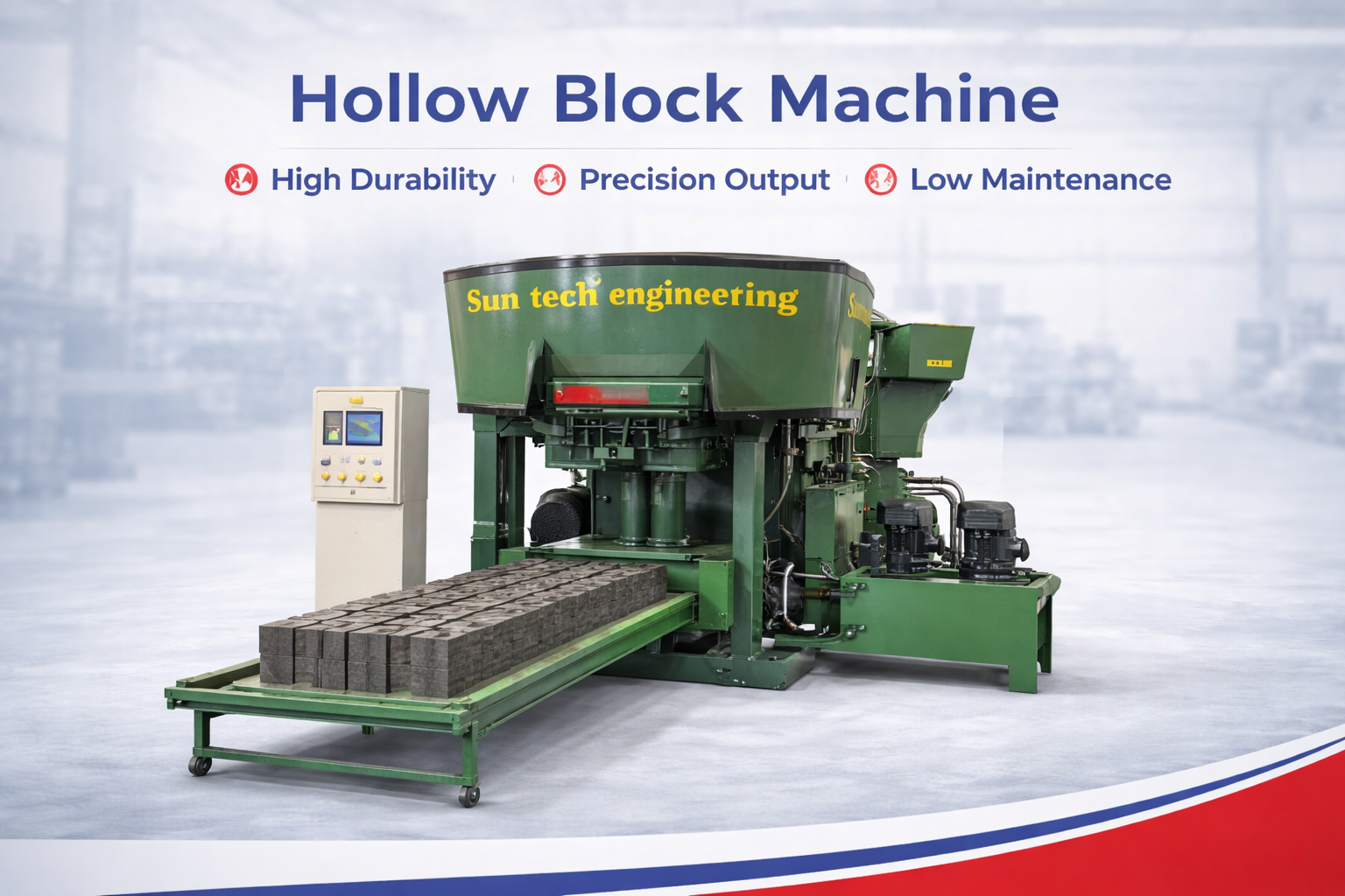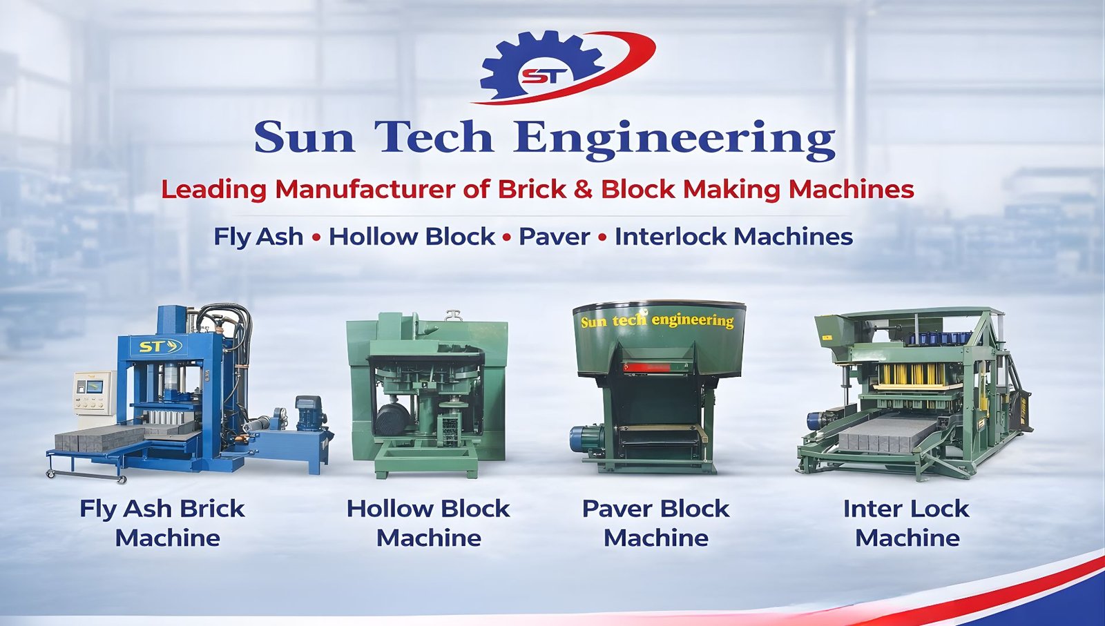 Sun Tech Engineering is a leading manufacturer and supplier of high-performance brick and block making machines in Coimbatore. We specialize in Fly Ash Brick Machines, Hollow Block Machines, Paver Block Machines, and Interlock Block Machines, delivering reliable and cost-effective solutions for the construction industry.